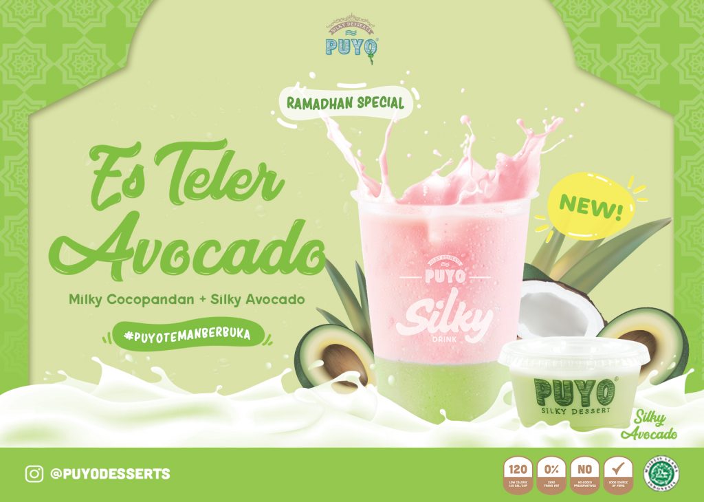 Dalam rangka menyambut bulan suci tahun ini, Puyo Desserts mengeluarkan rasa baru yang manis dan segar untuk teman berbuka puasa. Say hi to #SilkyAvocado, #MilkyCocopandan, dan #EsTelerAvocado!